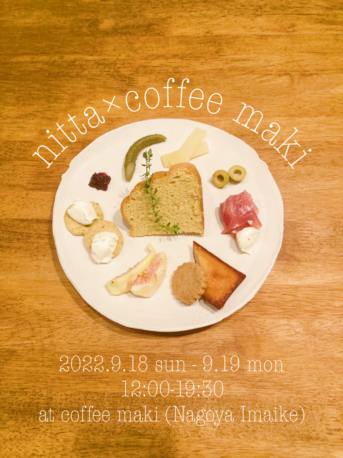 - - ——– nitta × 珈琲舞姫 ——————————————— サヴォアのお菓子と料理nitta https://savoie-nitta.com/ × 珈琲舞姫 サヴォアのお菓子と料理nittaが珈琲舞姫へやってきます。 フランスのサヴォア地方の郷土菓子"ビスキュイドサヴォア"を楽しんで頂ける2日間です。 また、nittaのビスキュイドサヴォアと珈琲舞姫の珈琲のセット販売を予約制で行います。 豊田の田茂平にお店を構えるnittaが名古屋で楽しめる貴重な2日間です。 是非、お越し下さいませ。 ——— 詳細 —————————————————— 日付:2022年9月18日(日) - 19日(祝・月) 時間:12:00-19:30 場所:名古屋市千種区今池2-2-30(珈琲舞姫) 問い合わせ先:080-3389-6579(珈琲舞姫) 両日、下記の4部制でご予約を承ります。 ❶12:00-13:30 ❷14:00-15:30 ❸16:00-17:30 ❹18:00-19:30 ⚐予約方法 お名前・お時間・人数・電話番号 を 珈琲舞姫( @coffee_maki )のDMまでお送り下さいませ。 Instagramをやっていない方は、HPのお問い合わせからメールをお送りください。 ⚐ご注文について →ビスキュイドサヴォアプレート ¥1,450(税込)と併せて、 ワンドリンクオーダー制です。 ビスキュイドサヴォアと珈琲豆セットのお渡しのみの方は該当しません。 ——— ビスキュイドサヴォアと珈琲セットの予約販売 — ビスキュイドサヴォアと珈琲セットの予約販売を行います。 ビスキュイドサヴォア ワンホールと下記のいずれかのセットをお選び頂けます。 ●ドリップパックセット 3種類(中煎り・中深煎り・深煎り) 各2個ずつ 計6個 ●お豆(挽きも可)セット エルサルバドル(中煎り) 80g インドネシア(深煎り) 80g 合計 160g ●水出珈琲パックセット ・1ℓ用 ブラジル ×1 ・1ℓ用 インドネシア ×1 合計 2袋 ※「全て深煎りがいい!」などお豆の種類で変更希望がある方は、お気軽に申し付けください。 また、全てのセットで、デカフェのお豆に変更することも可能です。 全てのセット ¥3,000(税込) ⚐予約方法 お名前・お引き取りのお日付・セット数・セット名・電話番号 を珈琲舞姫( @coffee_maki )のDMまでお送り下さいませ。 Instagramをやっていない方は、HPのお問い合わせからメールをお送りください。 締め切りは【 9/16(金) 】までとさせていただきます。 ⚐セットの販売は、店頭でのお引き取りのみも可能です。 ——— その他 —————————————————— 両日、カウンターのお席のみを予約席と致します。 通常の喫茶利用・テイクアウト・お豆の販売も致します。 いつもよりも席数が限られますが、ご利用くださいませ。 お電話で空席状況の確認をお勧めいたします。 ———————————————————————— 【 営業日 】 月曜日 ▶︎ 12:00-19:00 火曜日 ▶︎ 12:00-19:00 水曜日 ▶︎ 定休日 木曜日 ▶︎ 定休日 金曜日 ▶︎ 12:00-23:00 (18:00~ 喫茶&バー営業) 土曜日 ▶︎ 12:00-23:00 (18:00~ 喫茶&バー営業) 日曜日 ▶︎ 12:00-19:00 自家焙煎 珈琲舞姫 喫茶営業 / お豆の販売 / テイクアウト/ ギフト / 卸 〒464-0850 名古屋市千種区今池2-2-30 080-3389-6579 ⚐駐車場について →珈琲舞姫には駐車場はございません。 近くの有料パーキングへお願い致します。 また、目の前の大きな駐車場は河合塾さん専用ですので、 絶対に停めないでください。 ————————————————————————
