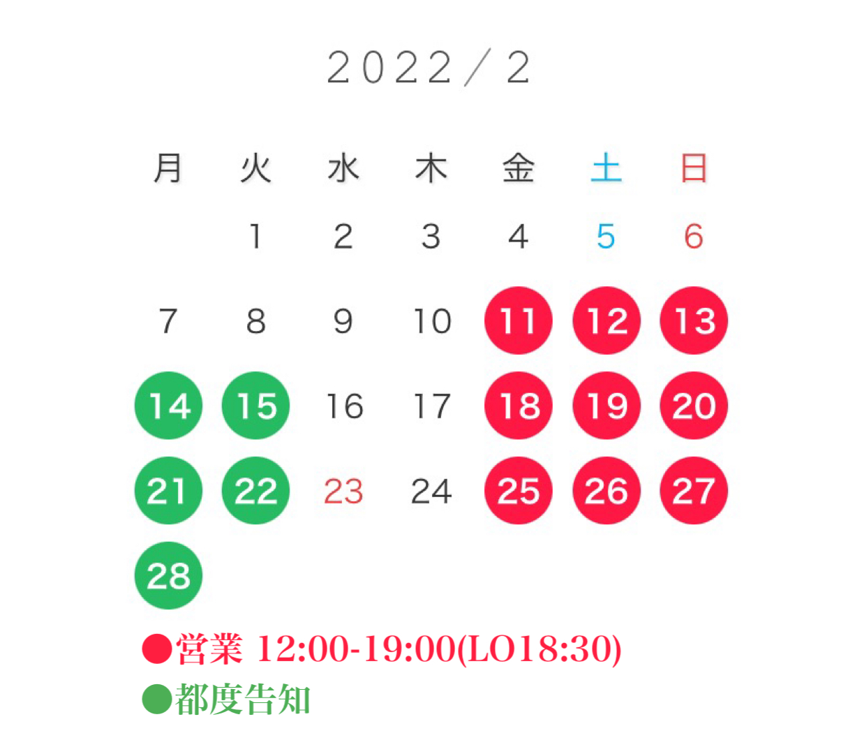 - - ●2/15(火)〜2/20(日) の営業について。 2/15(火) 12:00-19:00(LO18:30) 2/16(水) 定休日 2/17(木) 定休日 2/18(金) 12:00-19:00(LO18:30) 2/19(土) 12:00-19:00(LO18:30) 2/20(日) 12:00-19:00(LO18:30) - ●3月末までのプレオープン期間の営業 月曜日 ▶︎ 都度告知 火曜日 ▶︎ 都度告知 水曜日 ▶︎ 定休日 木曜日 ▶︎ 定休日 金曜日 ▶︎ 営業 12:00-19:00(LO18:30) 土曜日 ▶︎ 営業 12:00-19:00(LO18:30) 日曜日 ▶︎ 営業 12:00-19:00(LO18:30) - 自家焙煎 珈琲舞姫 喫茶営業 / お豆の販売 / テイクアウト 〒464-0850 名古屋市千種区今池2-2-30 080-3389-6579 -